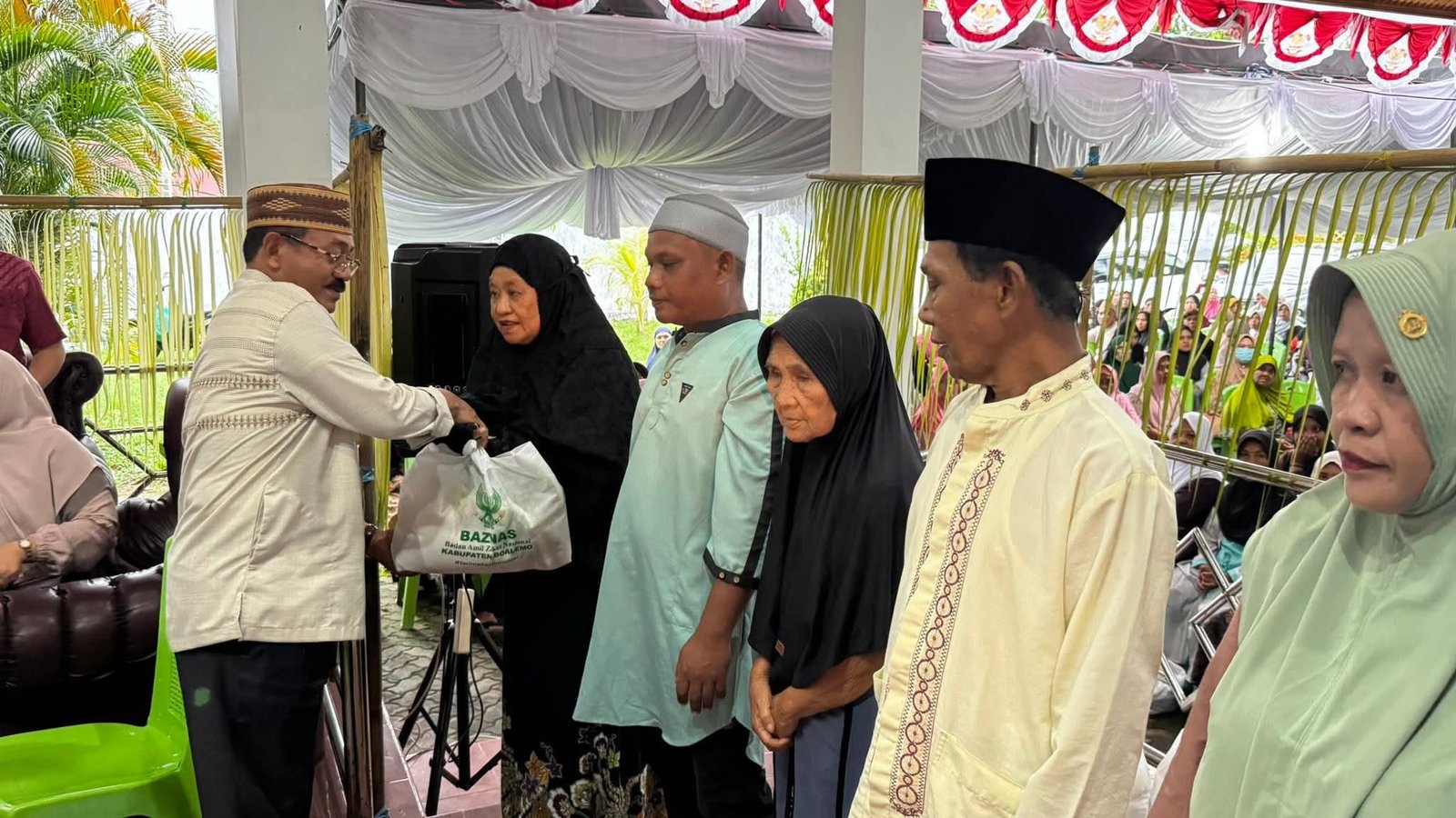 “Bantuan yang bapak ibu terima hari ini adalah hasil dari keikhlasan para PNS kita. Gaji mereka dipotong sebesar 2,5 persen setiap bulan untuk disalurkan kepada saudara-saudara kita yang membutuhkan,” kata Rum.